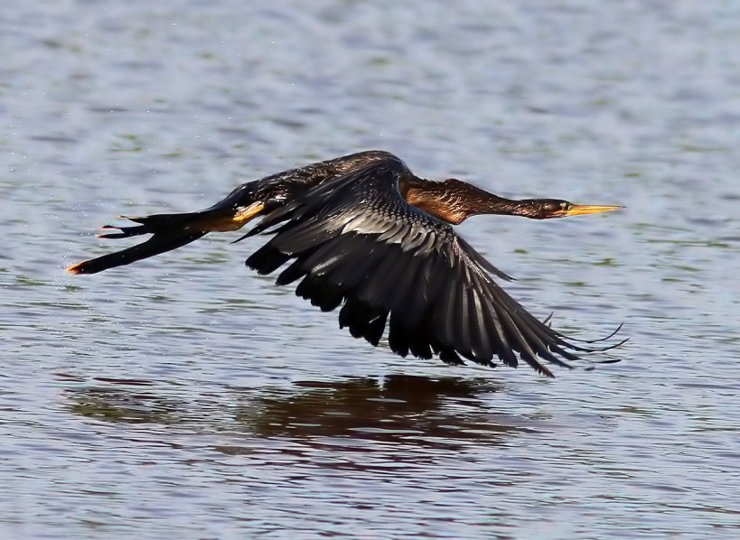 I was watching a male anhinga preening and drying off at the marsh pond this morning. After a short while it hopped in the water to start fishing. A little later on I saw a female anhinga taking off out of the pond, and another one flying overhead.