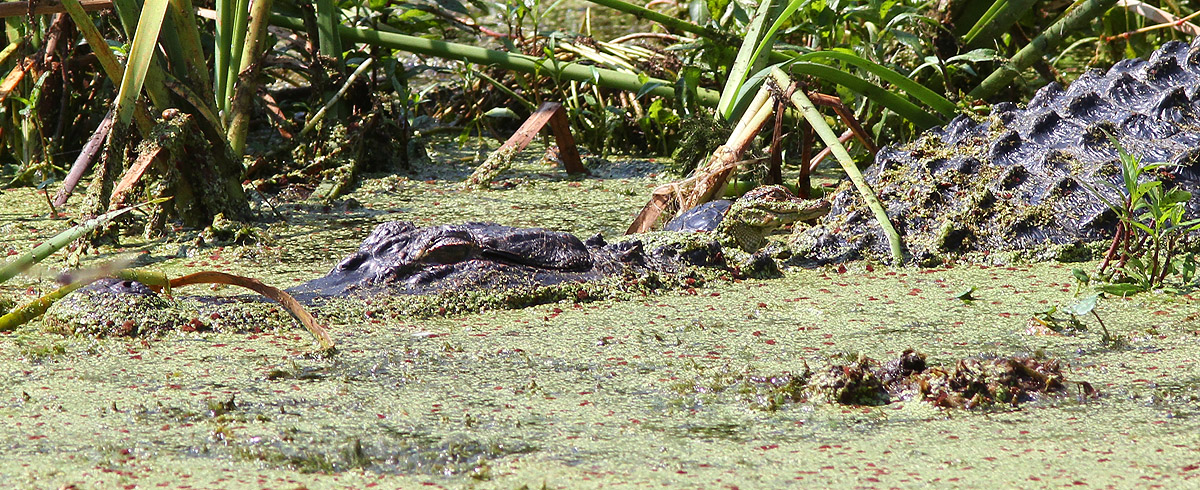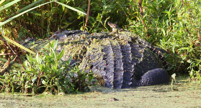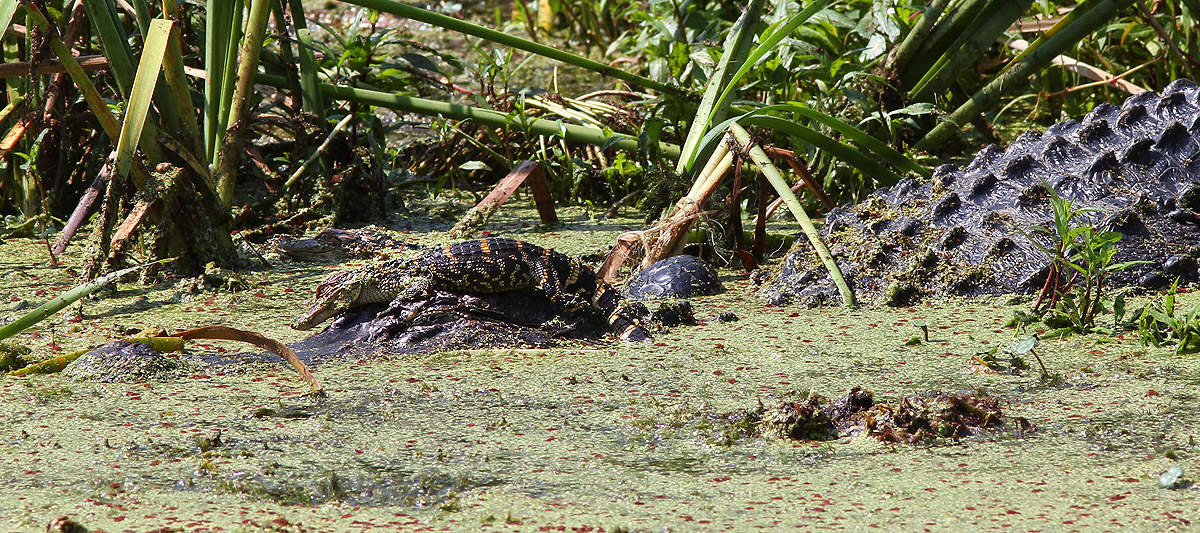 This morning we saw a mother alligator in the swamp trying to relax with 3 little ones hanging onto her. One by one they scampered off her to explore the area. Suddenly mom realizes that her offspring are nowhere to be seen, so she plunges into the mucky swamp water to find them. No worries though as one quickly hops onto mom’s neck before disappearing back into the muck. Later, another youngster climbs on top of mom’s head which is undoubtedly the safest place to be in the swamp!