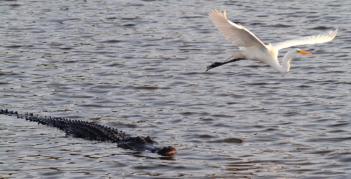 The race last night in the marsh pond was over almost as soon as it started. Even moving at flank speed, the alligator was no match for it’s winged competitor. Egret paid $2.40 on a $2.00 bet. Not a huge payout by any means, but not bad considering he was the overwhelming favorite!
