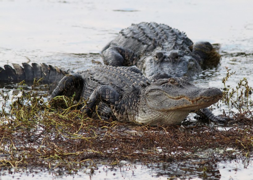 But the relaxed gator realized soon enough that his peace would be interupted by mayhem from behind.