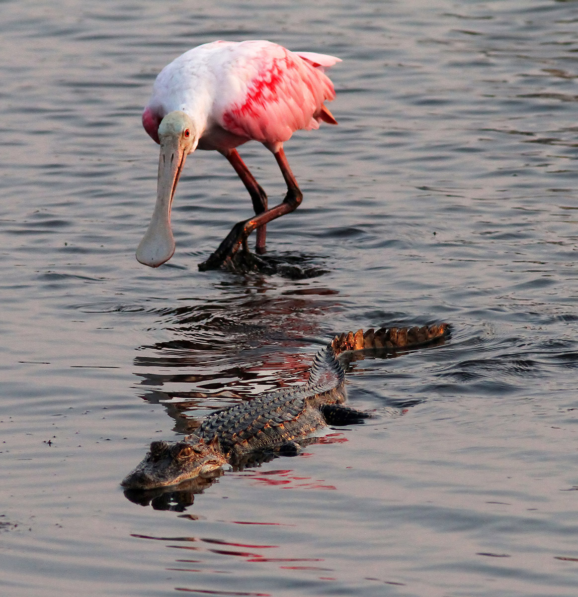 • I think you are right, that alligator was certainly putting up with a lot of nonsense from those goofy spoonbills and likely did not have to even if it was a youngster.