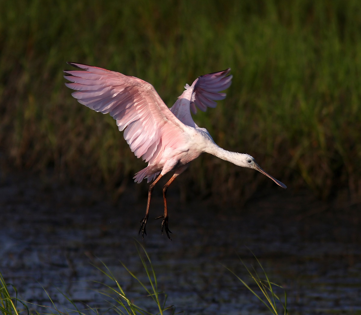 Last night a small group of Roseate Spoonbills descended upon the salt marsh at low tide to begin feeding.