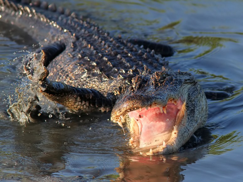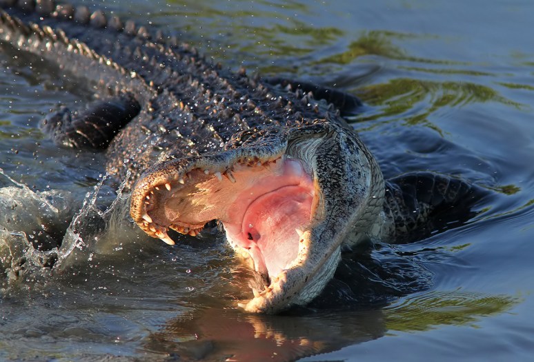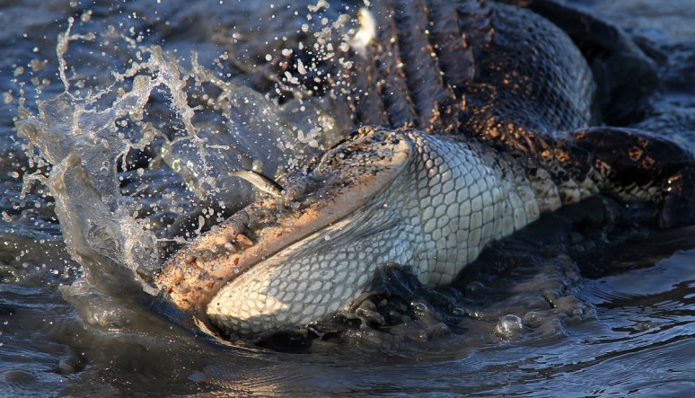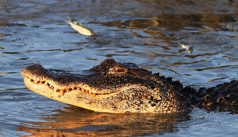 Every so often the gator would lunge out and make a huge splash in the water in an attempt to stir up the fish. This tactic worked as numerous fish were even launching themselves up out of the water to hopefully escape becoming a meal. Some fish did manage to get away but many others ended up on the night’s menu for the hungry alligator.