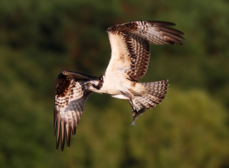 This osprey came in talons first and scooped itself out one of those little fish and flew off with it.