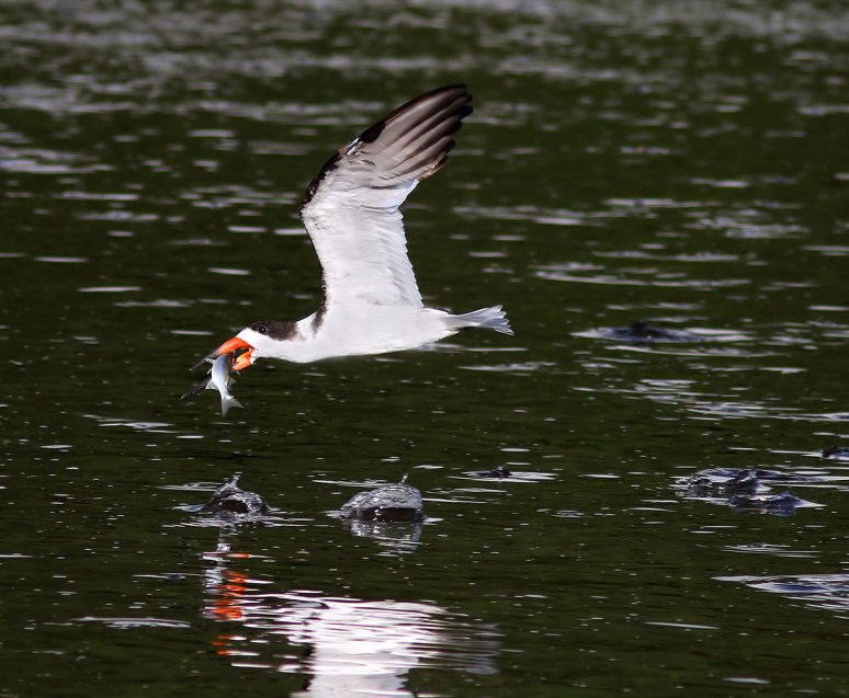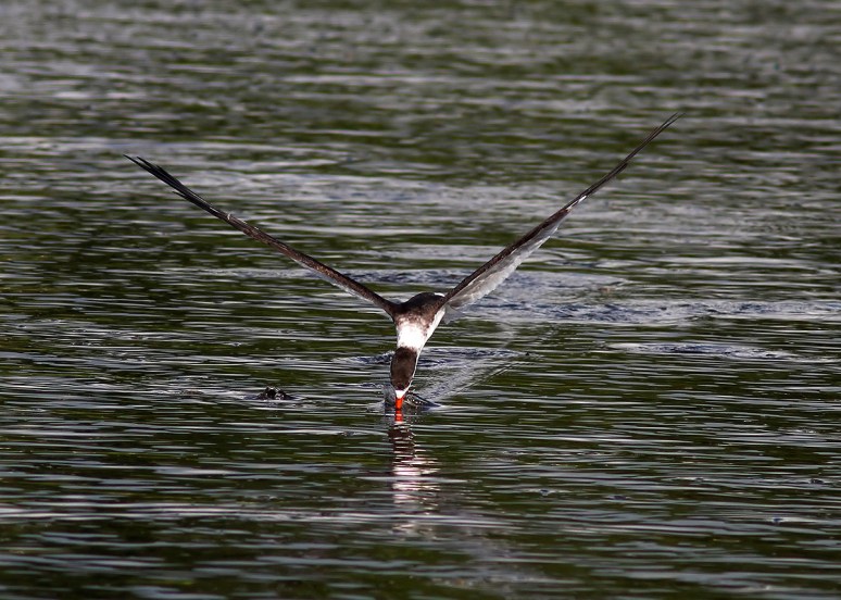 The black skimmer “skims” low, dipping the lower portion of it’s bill into the water, snapping it shut when it comes in contact with a fish.
