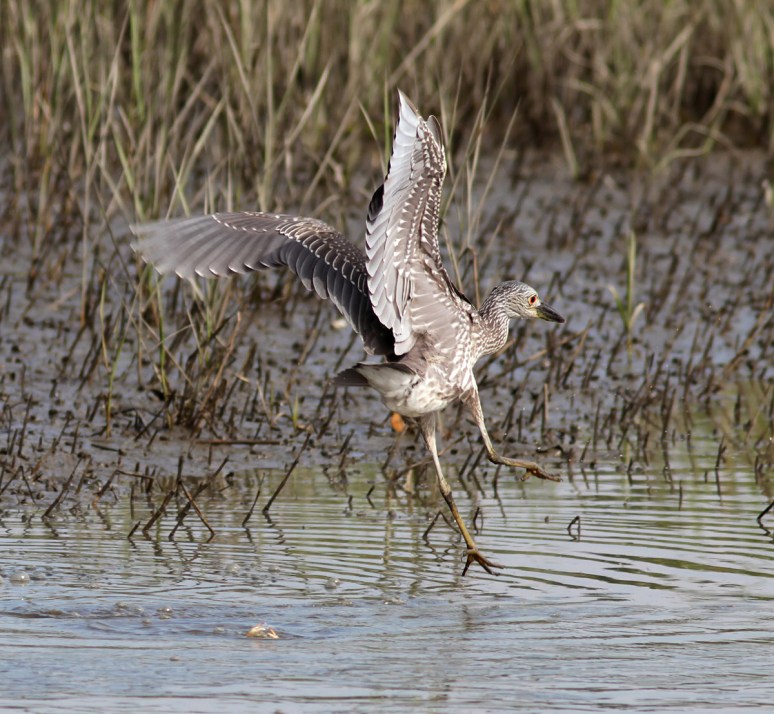 This past weekend we were watching a juvenile night heron that was searching for a meal in the salt marsh at low tide.