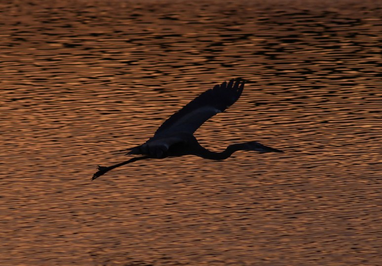 Last week we were at the marsh pond as the day was winding down, but we weren’t the only ones enjoying the sunset. This great blue heron, having concluded his fishing for the day, appeared to be contemplating the colorful sunset before finally heading off to roost for the night.