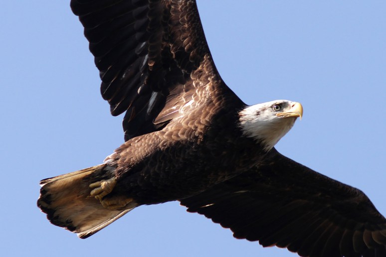 It looks like this eagle’s head has not yet turned completely white so I am thinking maybe a fourth year bird?