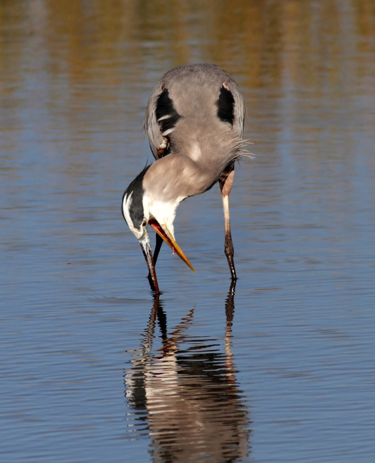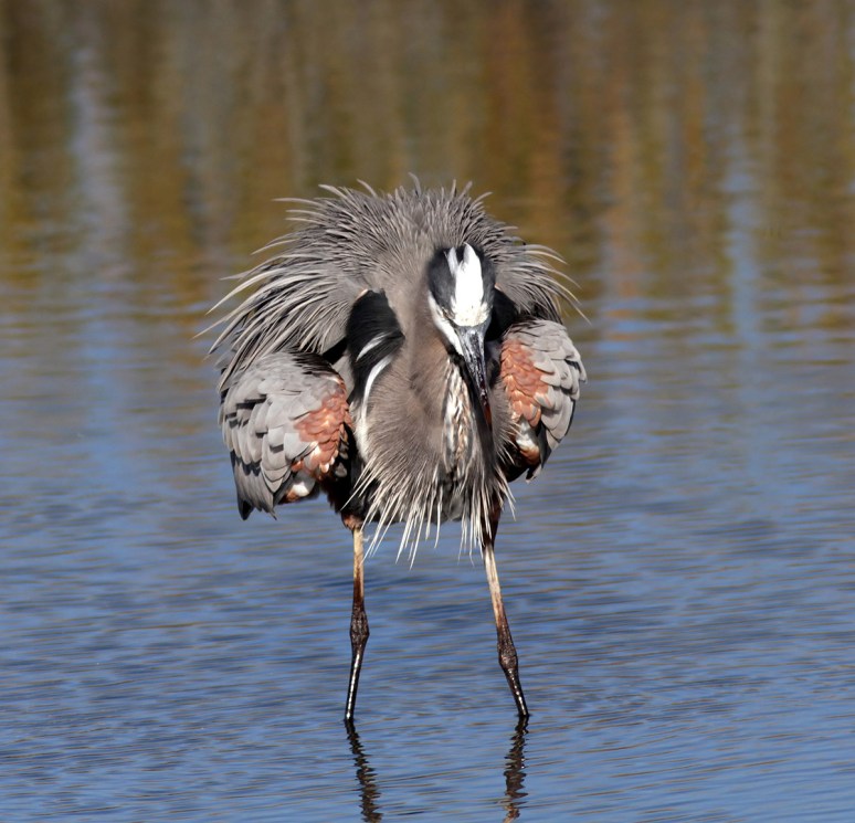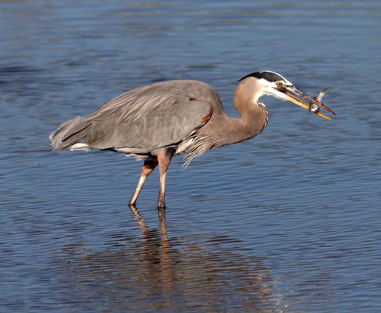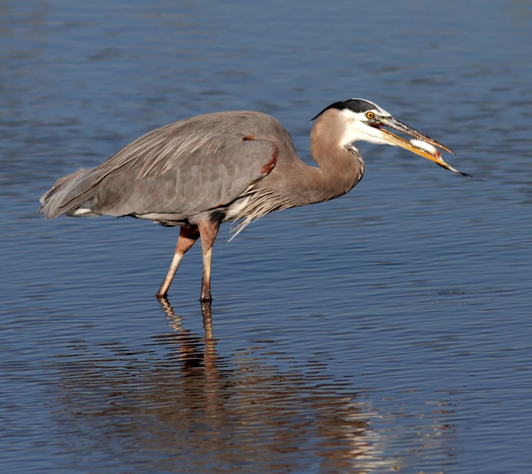 Earlier this week I was watching a great blue heron fishing in the salt marsh. At one point he caught a fish, not a huge fish by any means, but one that I’m sure he was happy to have all the same. Then right after he swallowed it, the heron took a few steps in my direction and stopped. I thought he had a funny look on his face, but then when he puffed himself up, I was worried that something was wrong with him…maybe the fish didn’t go down properly or all the way. Suddenly, he leaned down over the water, opened his beak and looked just like a cat hacking up a hairball! I didn’t see anything come back up though, and after a few seconds he straightened right up and went back to business as usual. I watched him for a little while longer to make sure he was okay and he continued fishing as though nothing had happened at all.