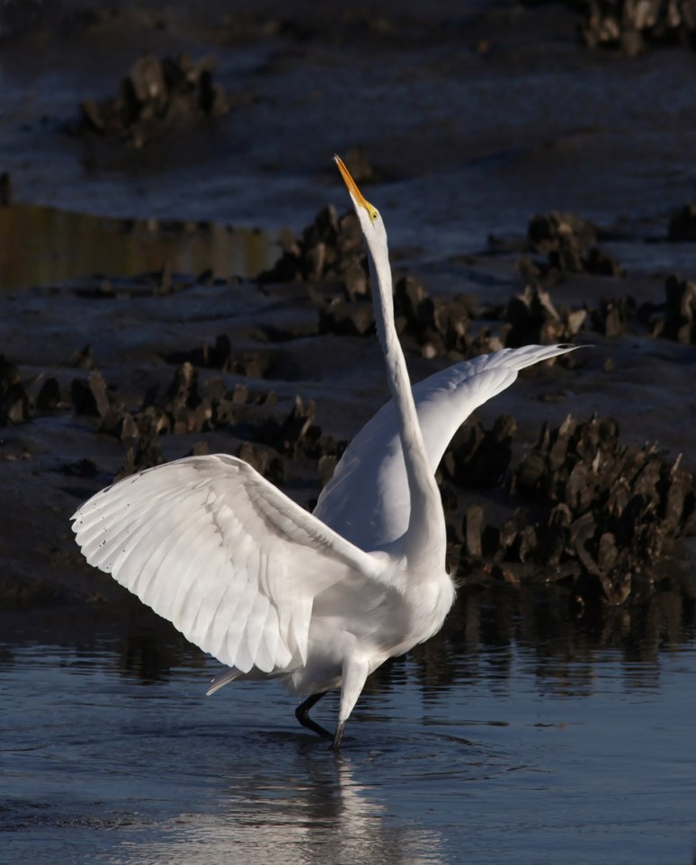 Even though it is unlikely even an eagle would bother a large wader like this great egret, it’s always smart to take a look at what’s up there when the alarm goes off.