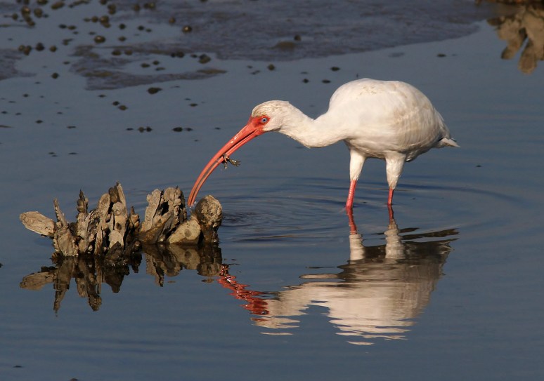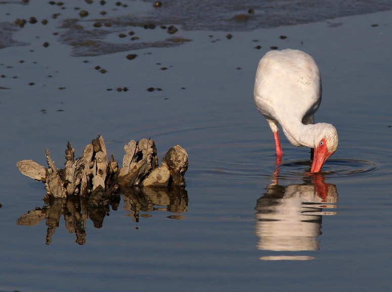 We were watching this very determined white ibis patrolling among the oyster beds at low tide in search of a meal.