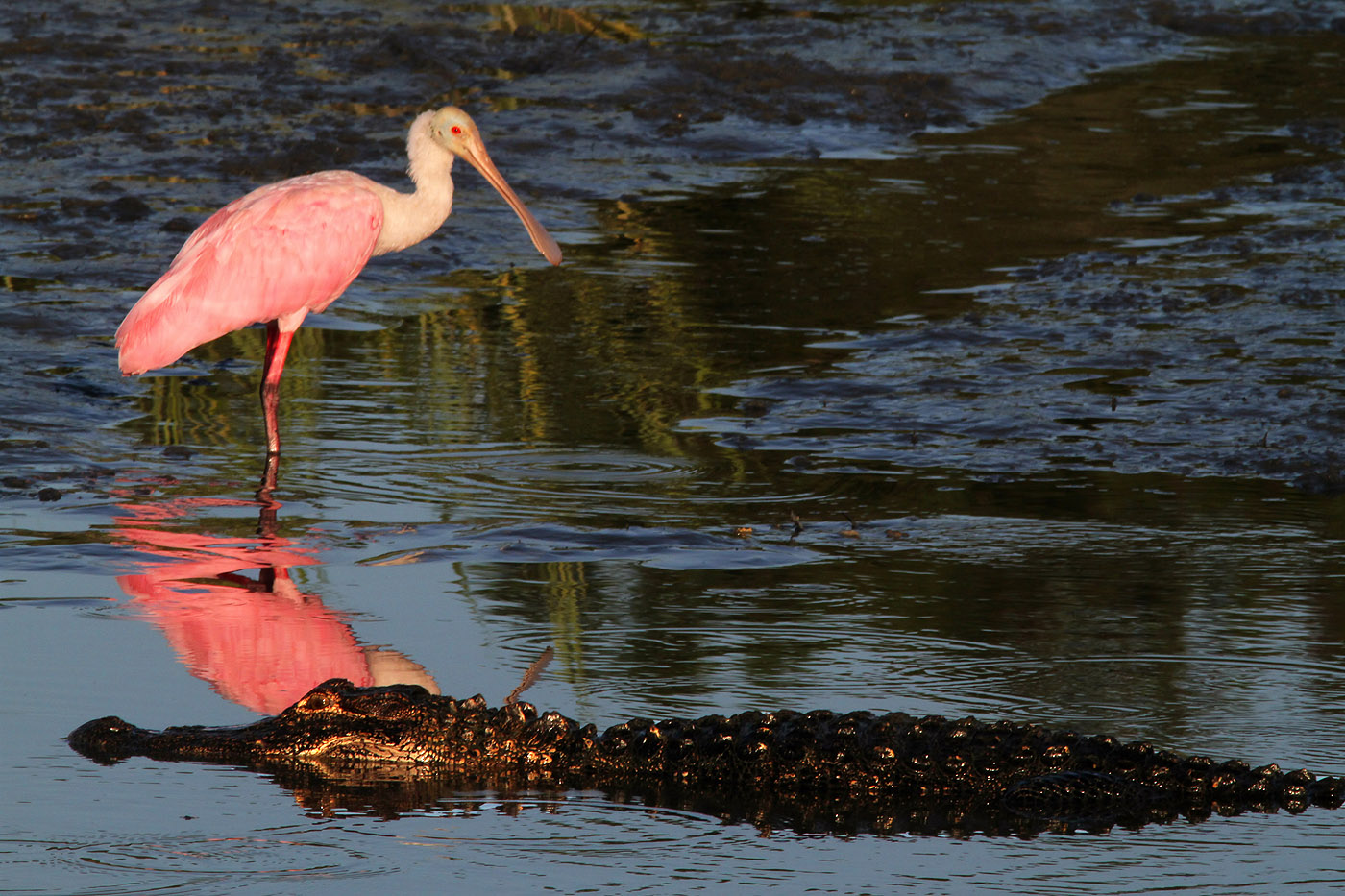 Spoonbill and Alligator