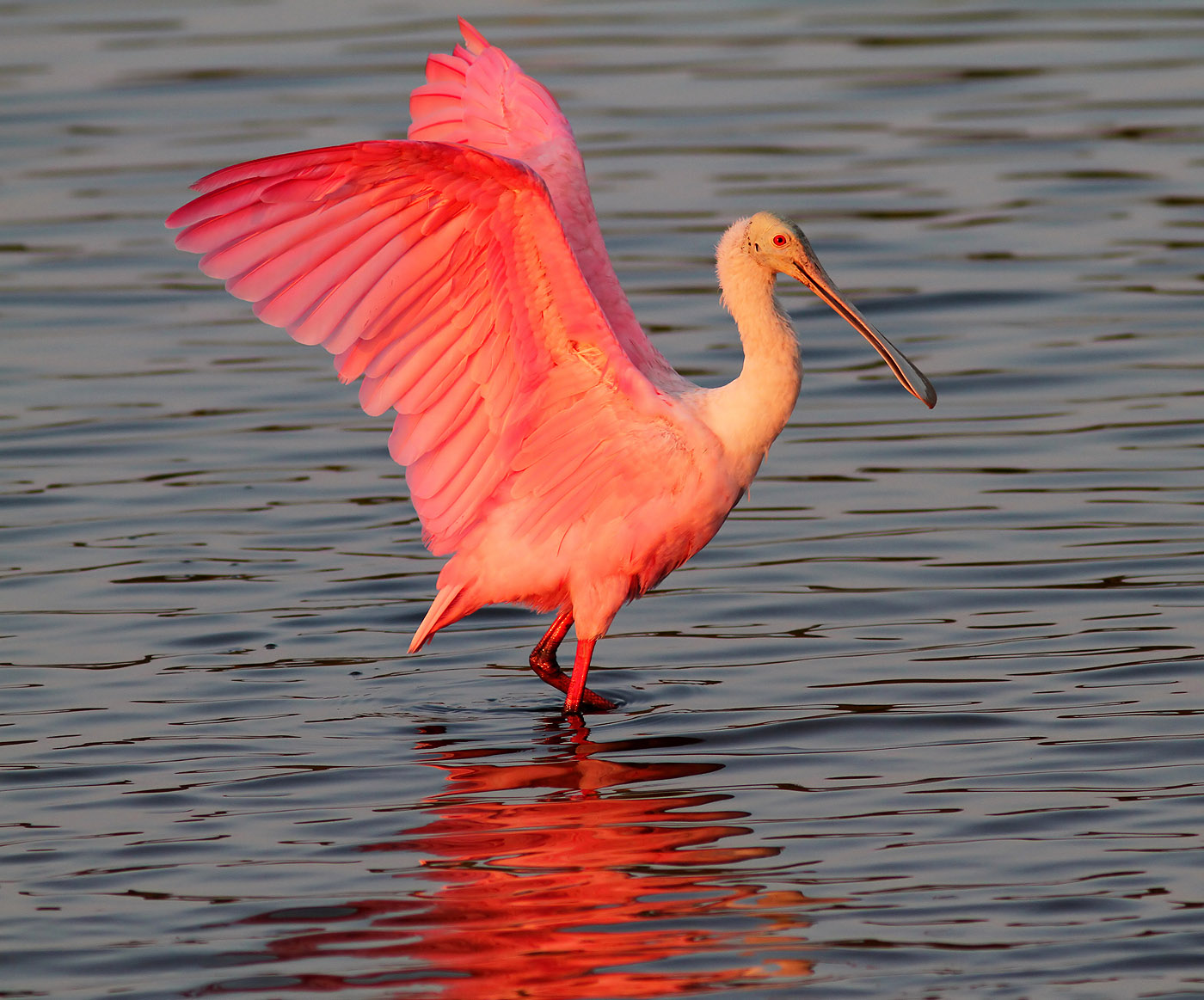 Spoonbill in Marsh Pond at Sunset