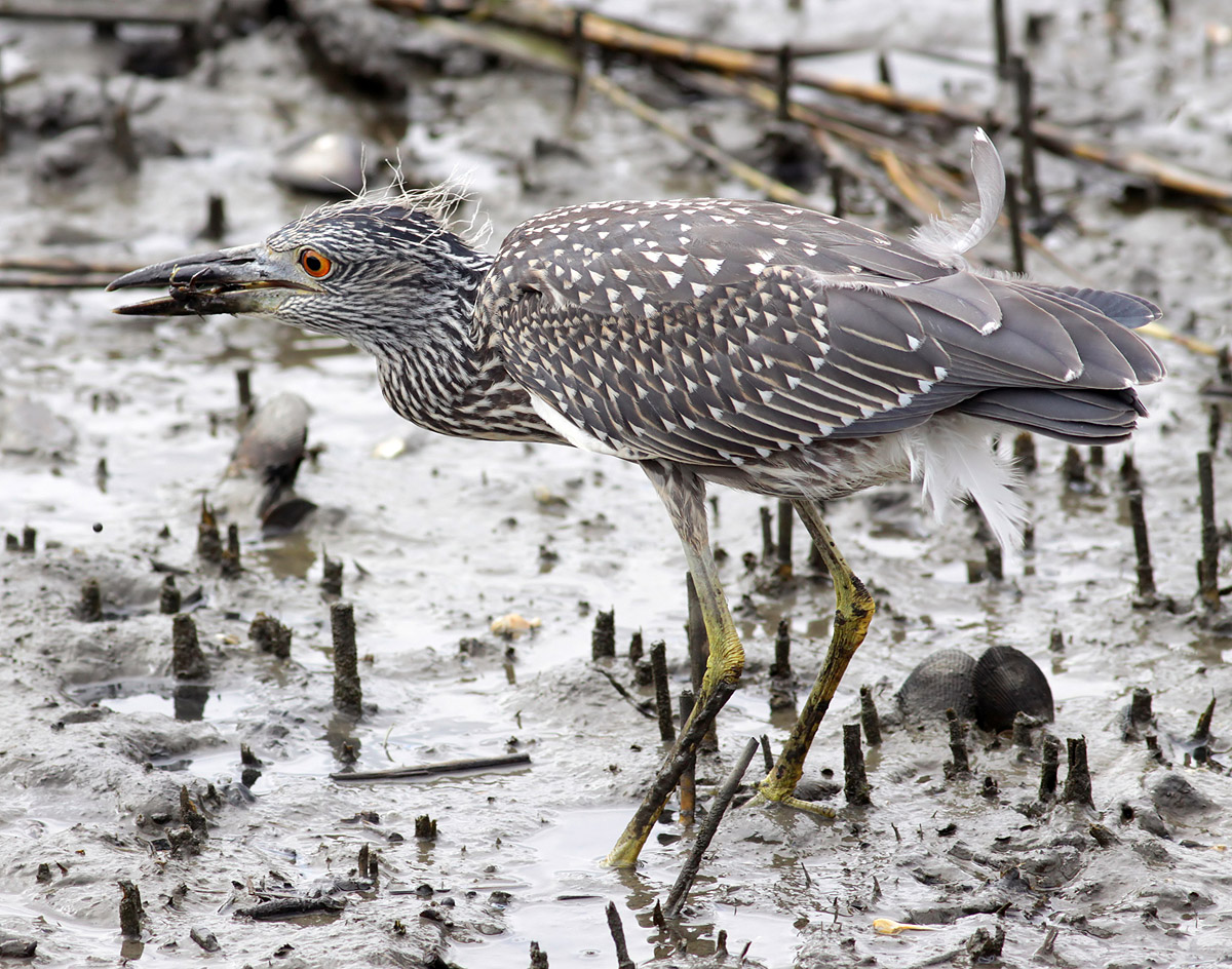 Juvie Night Heron Catches Crab