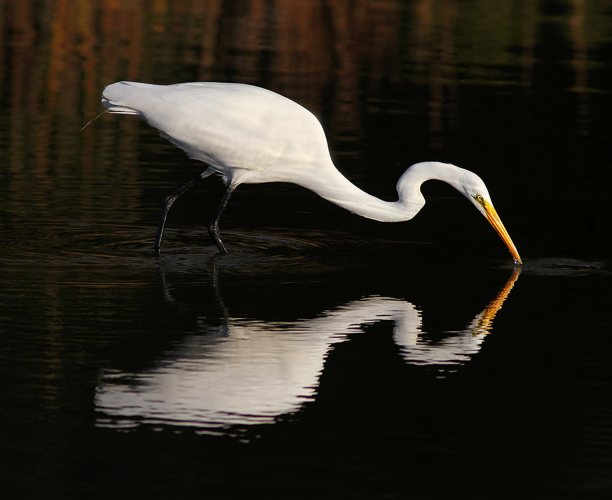 Egret Fishing in Salt Marsh with Reflection
