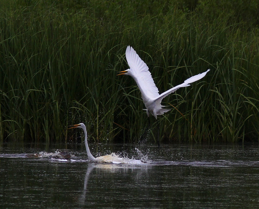 Egret Fight in the Marsh Pond