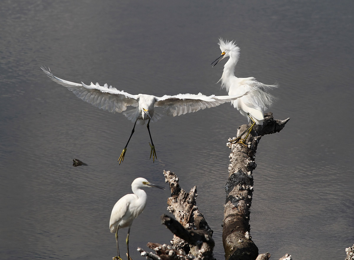 Three Egrets on a Stump