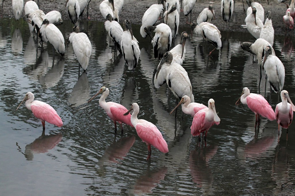 Spoonbill Wood Stork Crowd Explodes