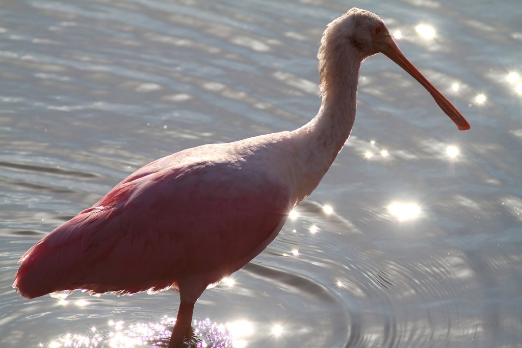 Spoonbill Feeding in the Marsh Pond