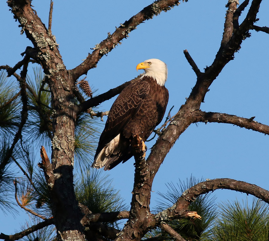 Bald Eagle Jumps Off From Pine Tree