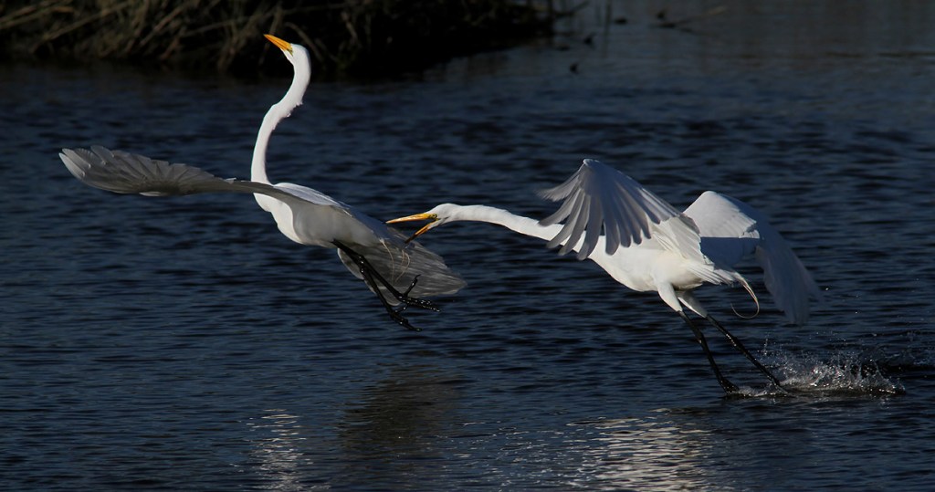 Egret Fight in the Salt Marsh