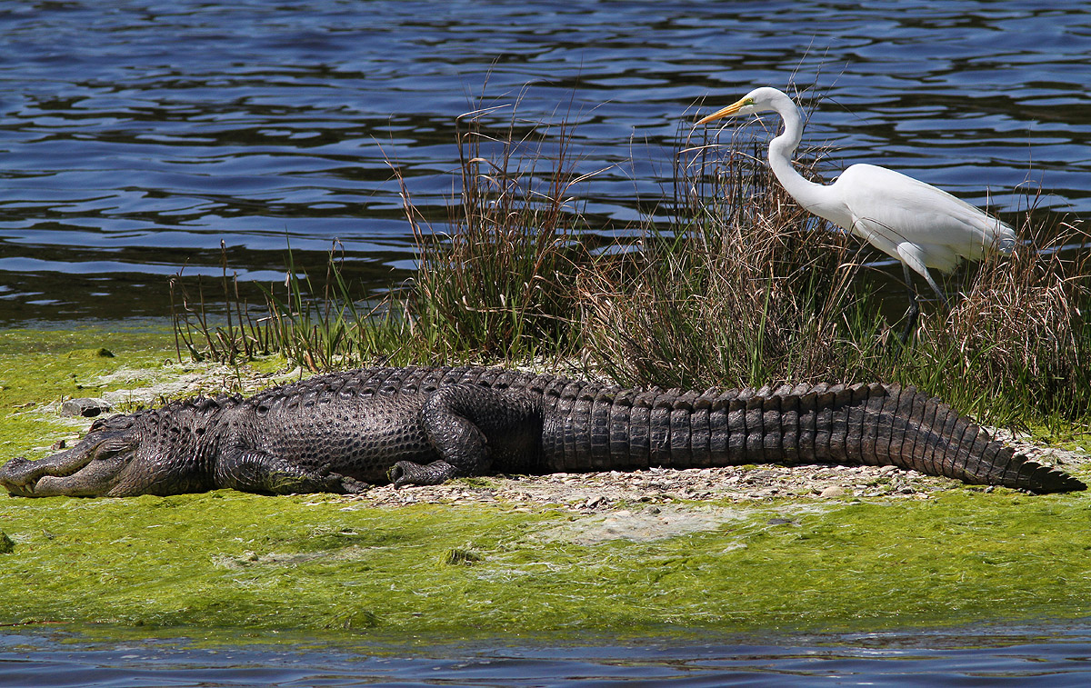 Napping Alligator and Egret