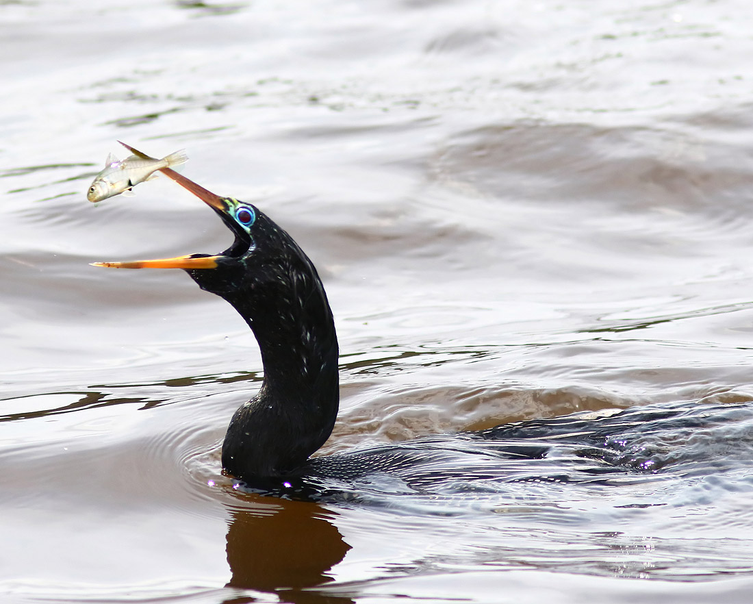 Anhinga Fishing and Flying