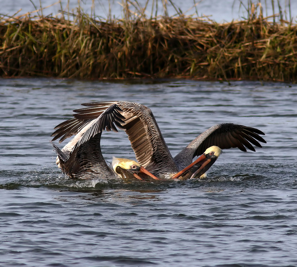 Pelicans And Eagle Battle For Big Fish