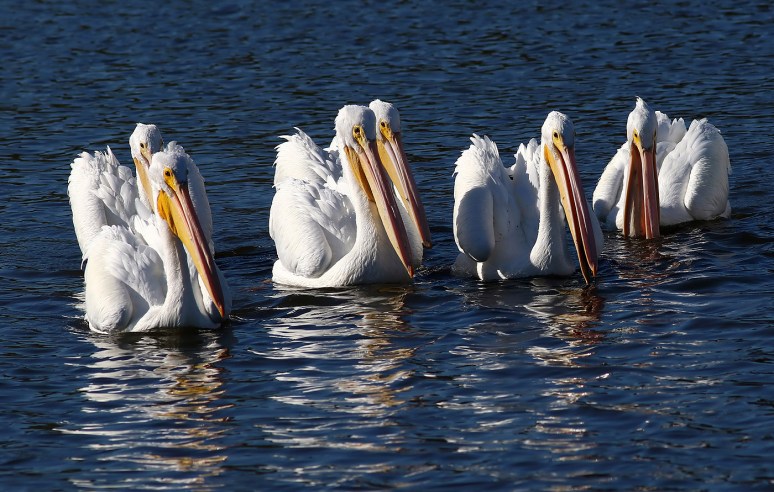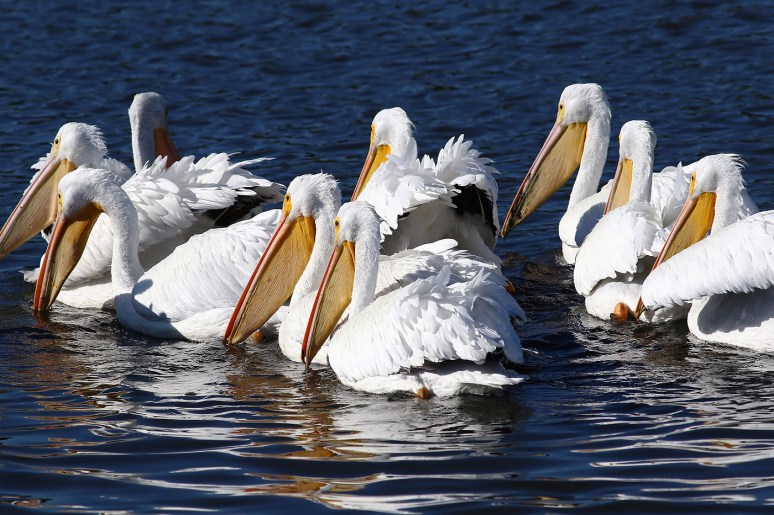 Fantastic photos! I love the dark blue water against these wonderful white pelicans!