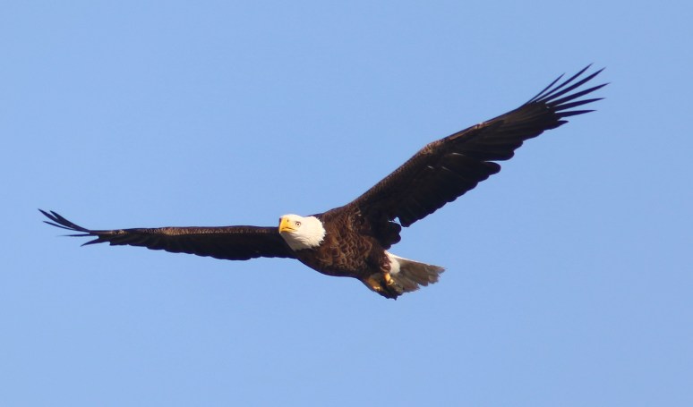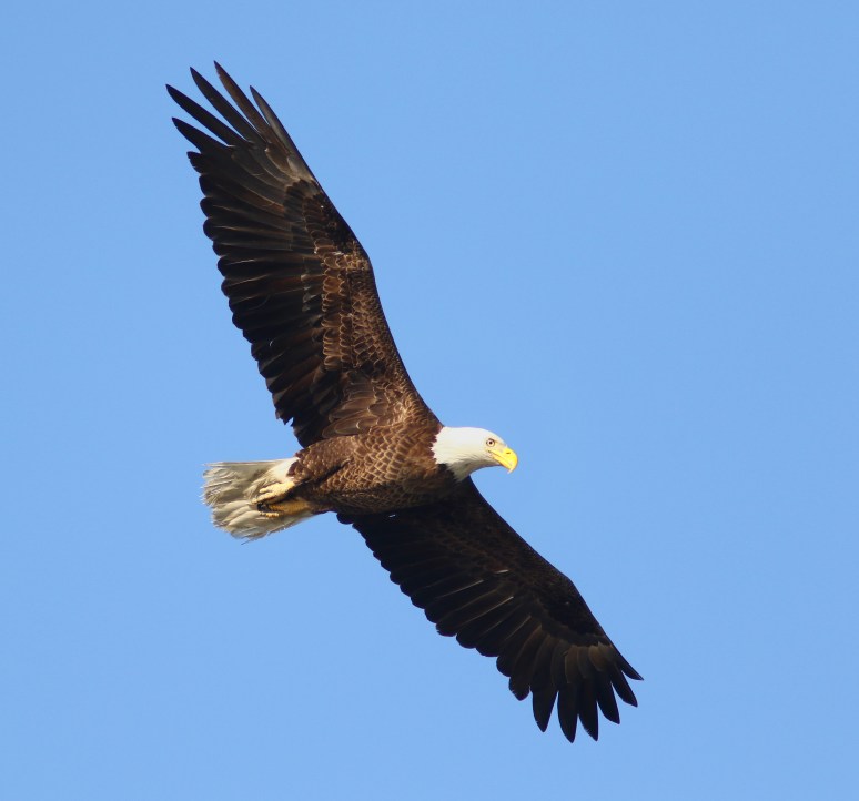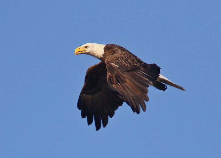 Last week, while we were watching the pelicans battle the cormorants, the snowy egrets battle each other, and the alligators mostly sleeping in the sun, a bald eagle did an unexpected fly around. He didn't appear to be seriously hunting, more of an aerial check of the salt marsh to make sure everything was in order and while at it, keeping his eyes open for an opportunity to potentially strike gold!