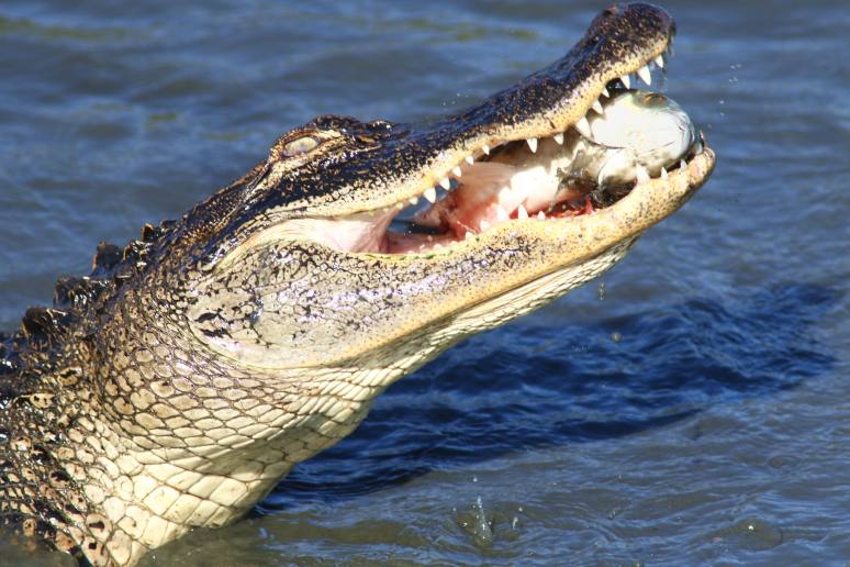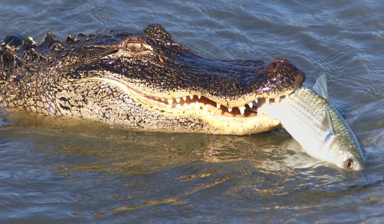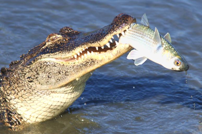 Ok…so here’s another sequence of our large, hungry, alligator continuing to enjoy his lunch of fresh caught mullet. And this is about as fresh as can be, plucked right from the water in the salt marsh. With the big guy having such a great time, along with an extremely skillful fishing technique, you just know he’s not done. Part 3 (and possibly part 4) still to come!